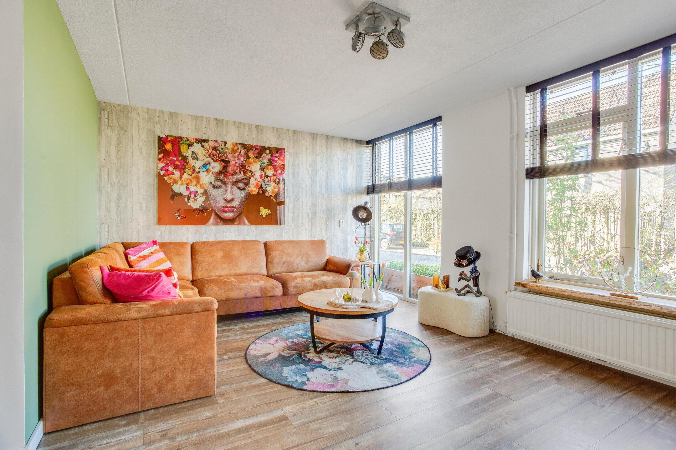 De woonkamer is licht en ruim en kijkt vrij uit over de voortuin. Dat geeft privacy en een ontspannen sfeer. De leefkeuken aan de achterzijde is het natuurlijke middelpunt van de dag. De keuken is vier jaar geleden vernieuwd en compleet uitgevoerd, zodat je zonder omkijken kunt koken, eten en ontvangen.